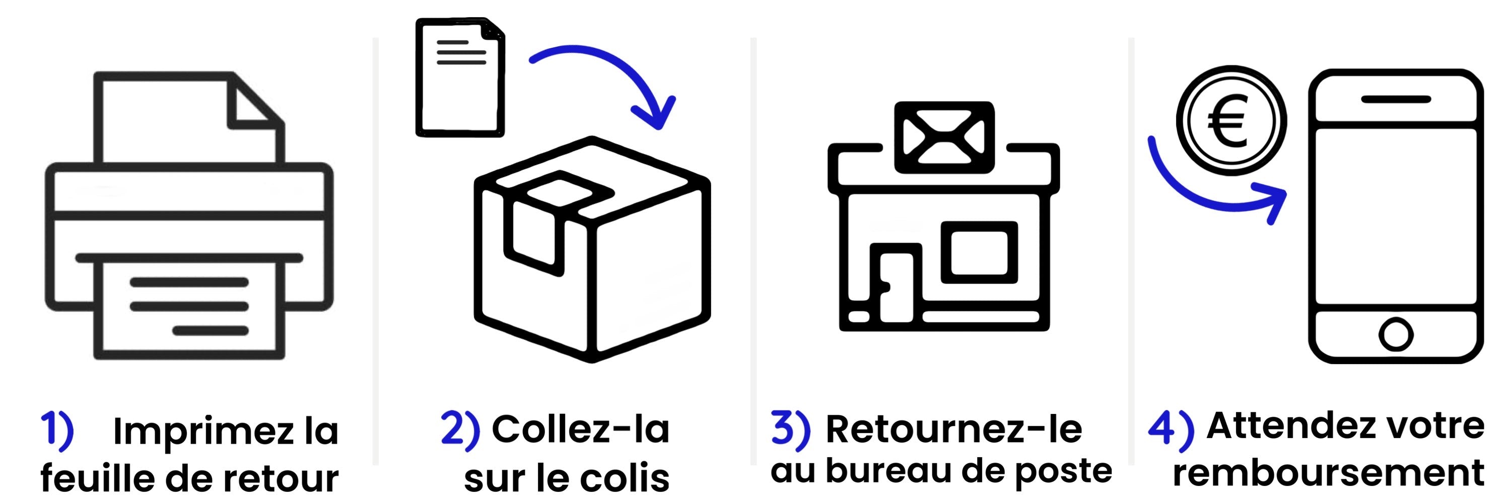 Si vous n'êtes pas satisfait de votre achat, il vous suffit de nous envoyer un mail à contact@my-shower.fr et nous nous chargerons de vous indiquer à quelle adresse retourner le produit en toute simplicité afin d’être remboursé (les frais du renvoi sont logiquement à votre charge).